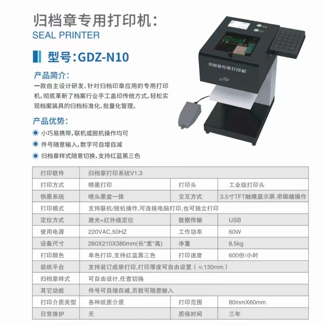 1)路方归档章打印机GDZ-N10