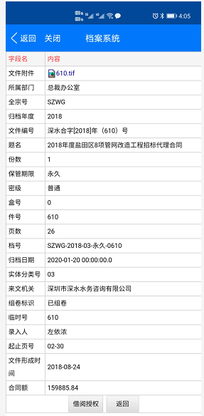 4、对无法查看原文的档案可进行借阅或授权的申请