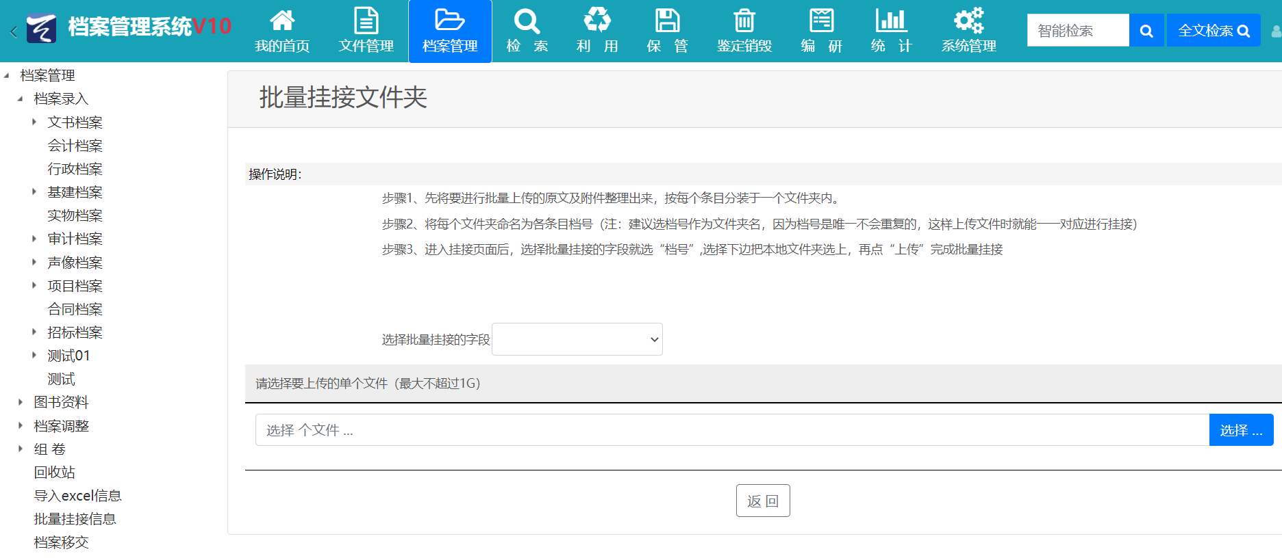 5、新增批量挂接文件夹功能,用户可以直接选择文件夹上传原文,不需要压缩;