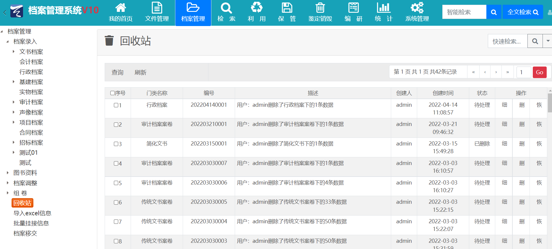 11、回收站按批次回收和恢复