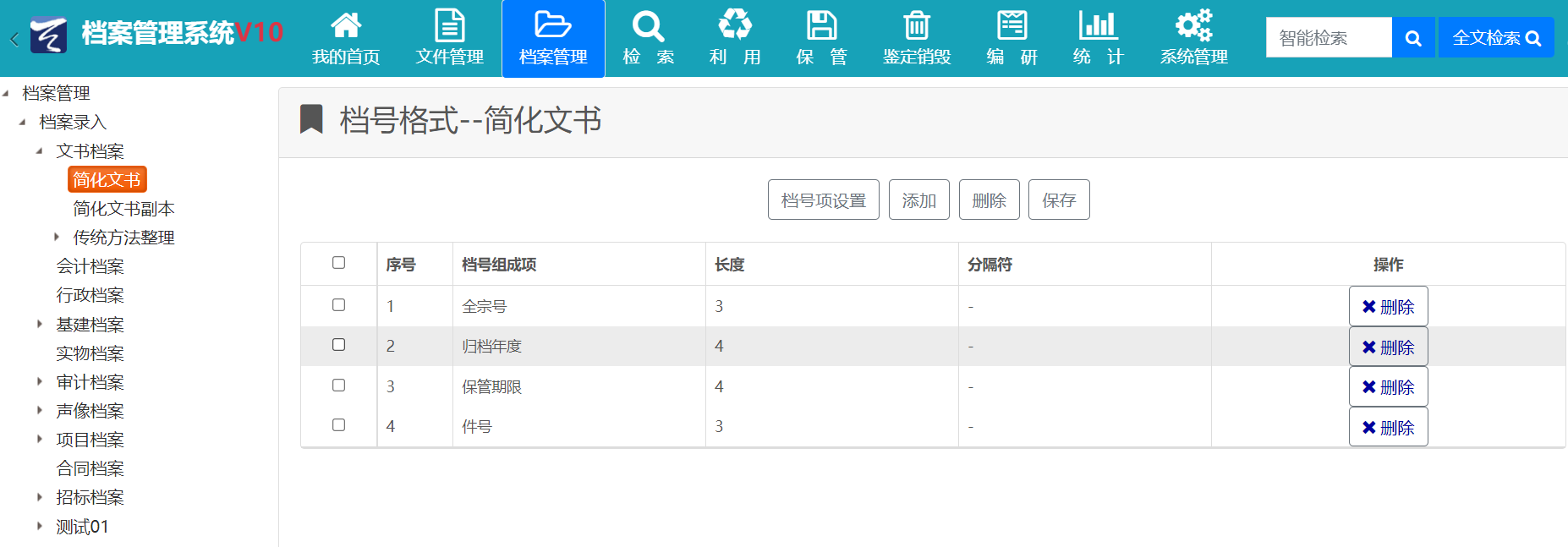 3、档号设置功能移植到前台实现,方便用户针对不同门类进行档号格式设置;
