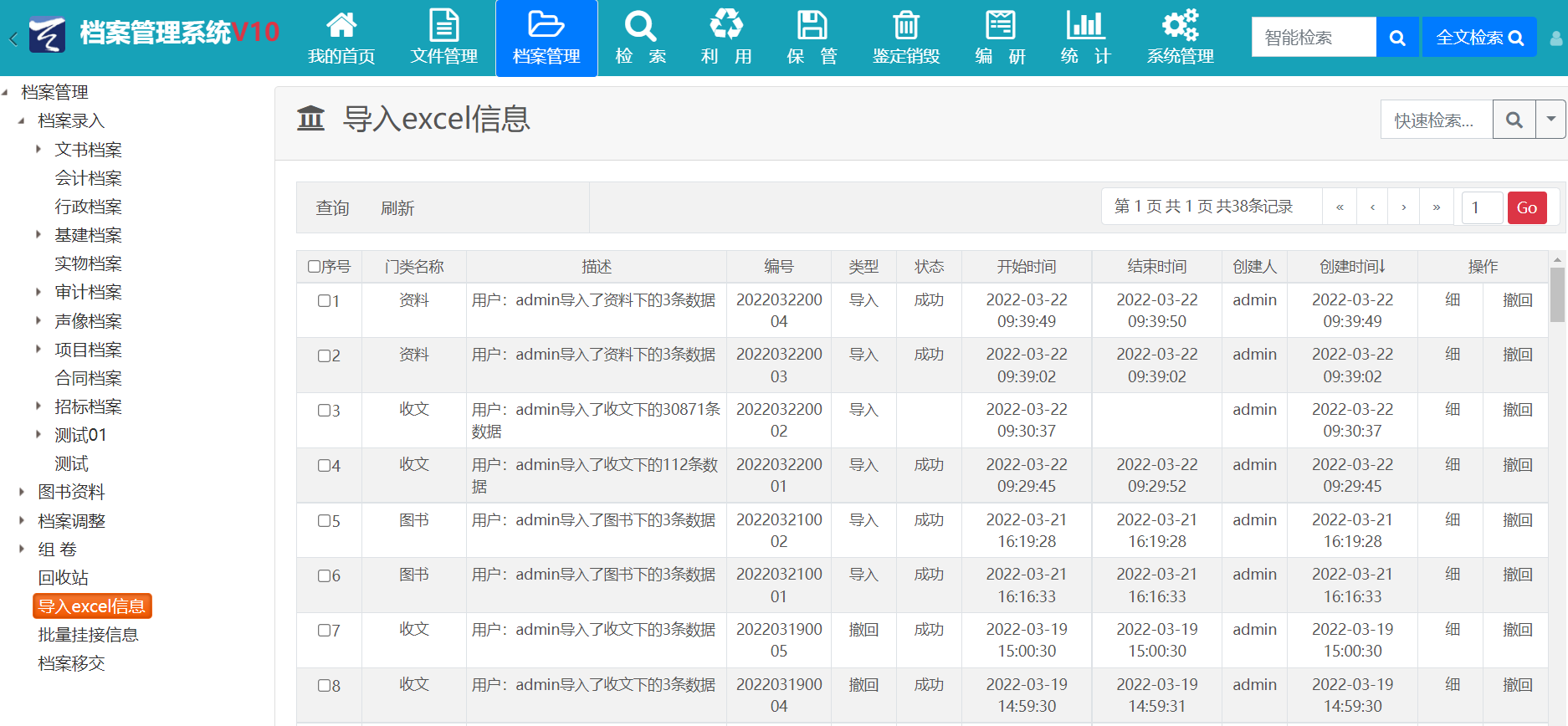 6、新增Excel批量导入一键撤回功能;